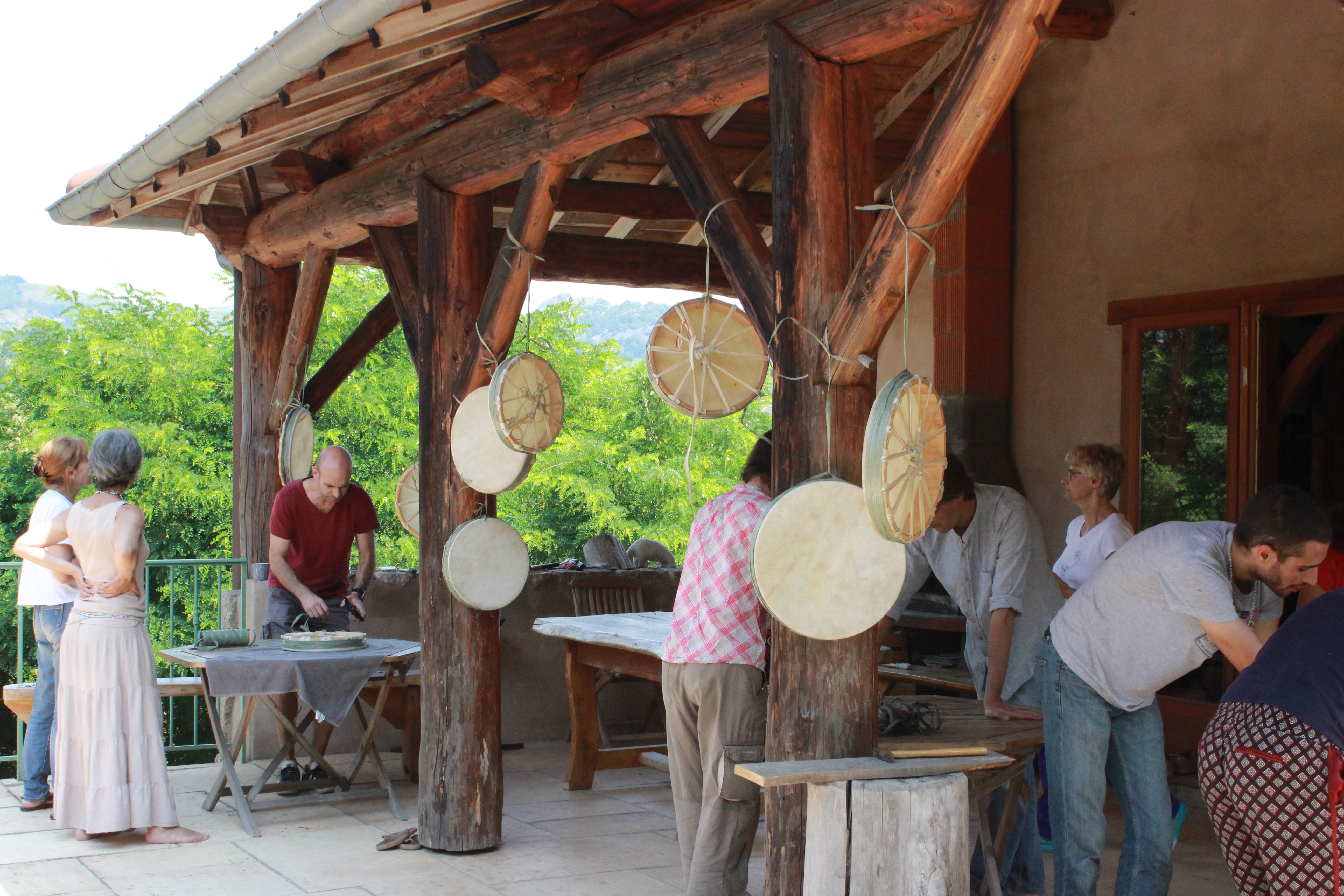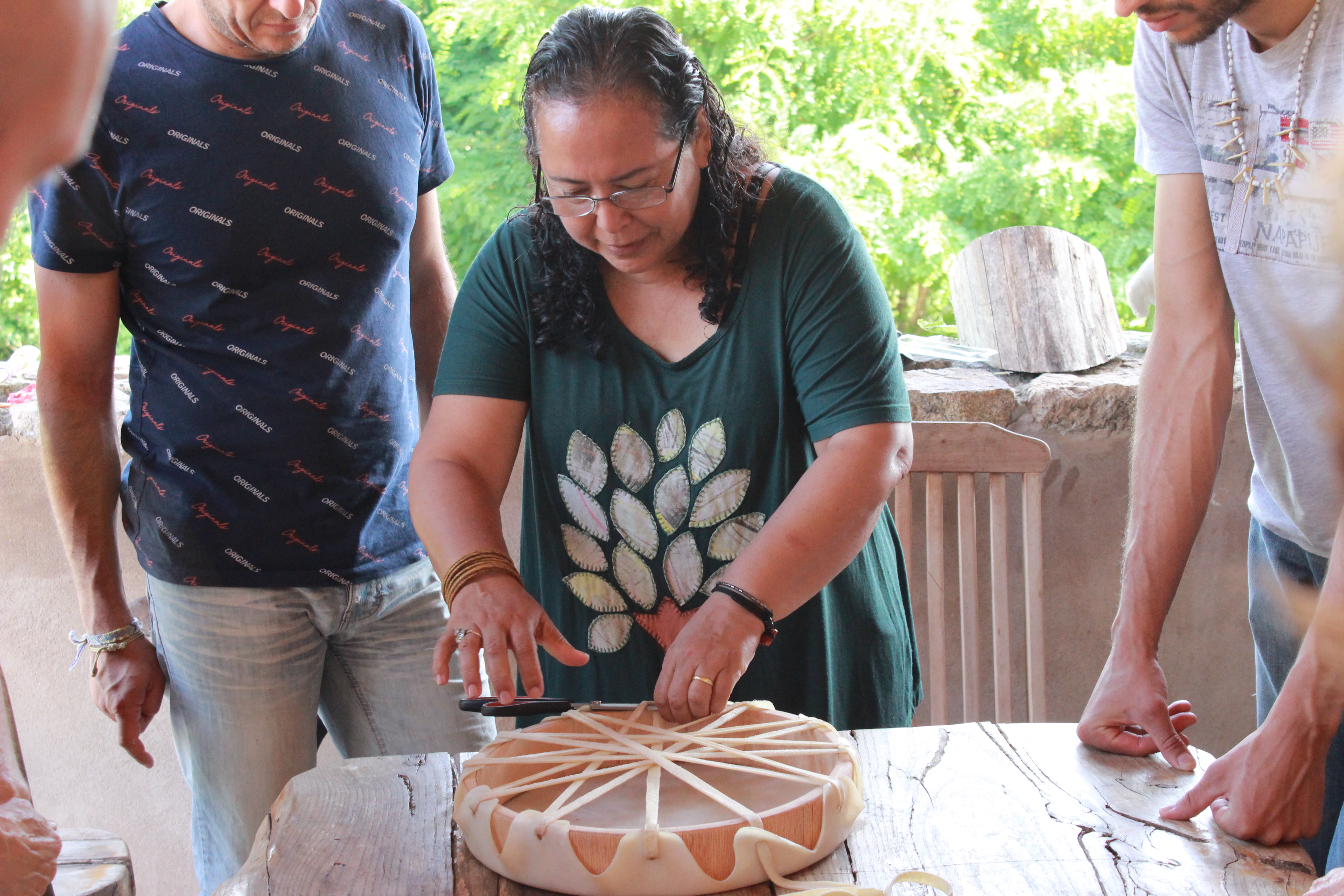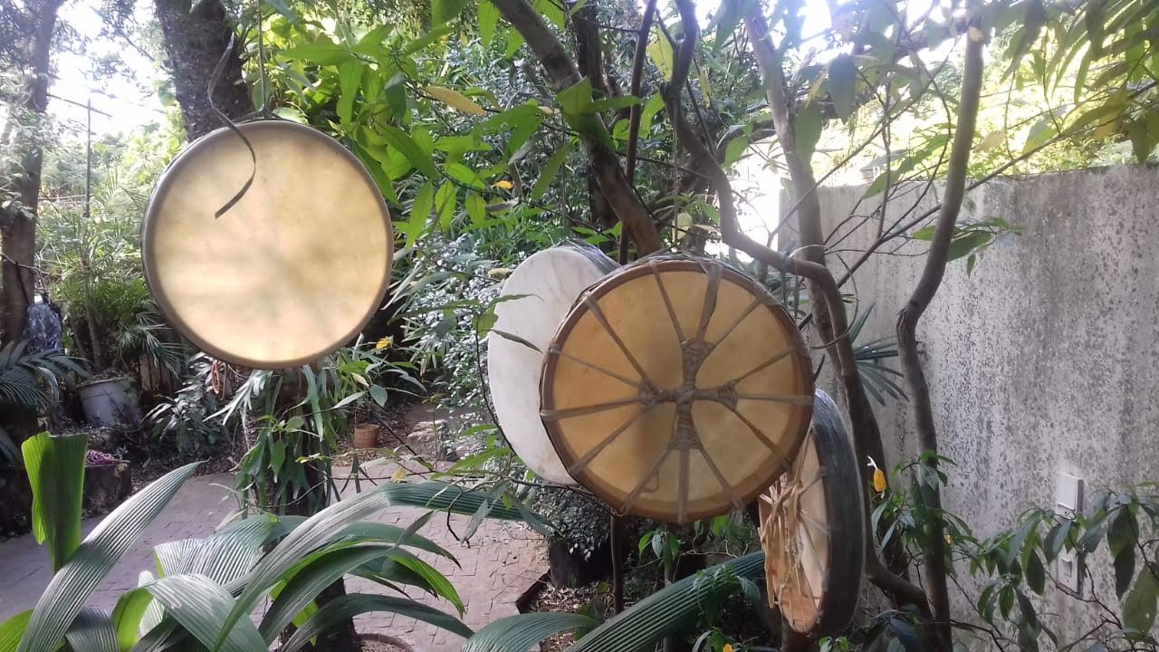 Quando resolvi fazer meu próprio tambor o universo me enviou para o Canadá, onde aprendi a fazer o meu tambor na tradição Ojibway. Depois pedi para que viessem ao Brasil ensinar esta arte a mais companheiros de jornada. Uns anos depois recebi a autorização para eu mesma liderar as oficinas. Já se vão 20 anos fazendo tambores no Brasil e no mundo.