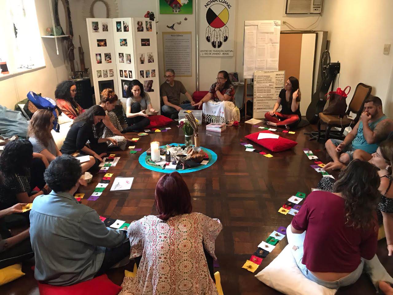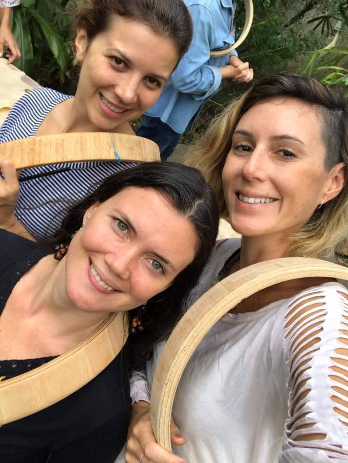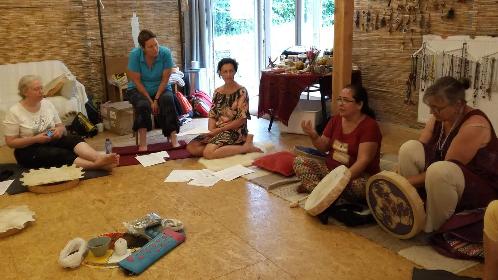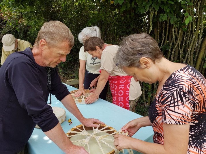 Quando resolvi fazer meu próprio tambor o universo me enviou para o Canadá, onde aprendi a fazer o meu tambor na tradição Ojibway. Depois pedi para que viessem ao Brasil ensinar esta arte a mais companheiros de jornada. Uns anos depois recebi a autorização para eu mesma liderar as oficinas. Já se vão 20 anos fazendo tambores no Brasil e no mundo.
