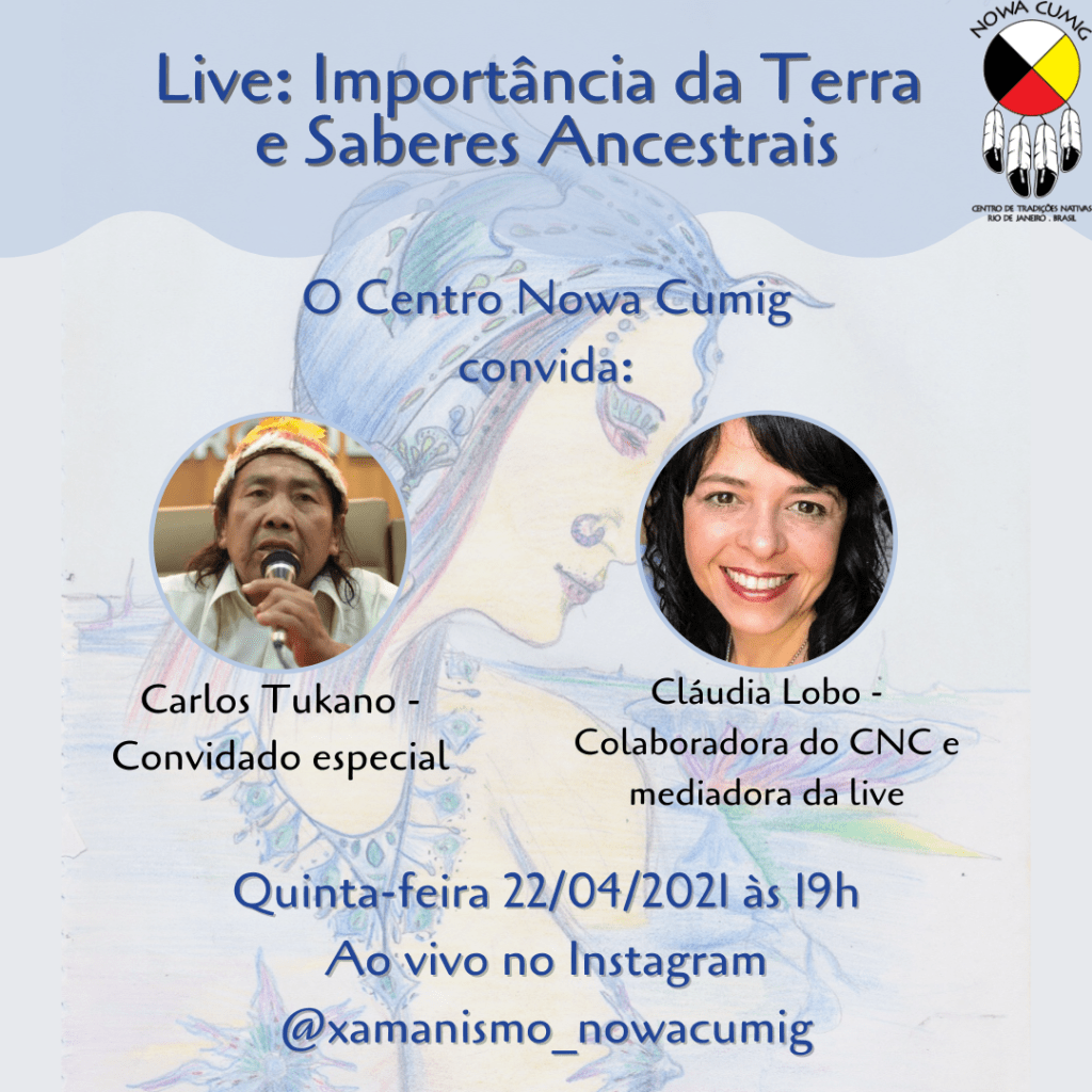 O Centro Nowa Cumig convida para participar desta live incrível com Cláudia Lobo, Terapeuta Xamânica e Carlos Tukano, líder espiritual Tukano, no Instagram do Nowa Cumig. Nos ajude a compartilhar! E vamos aproveitar mais essa grande oportunidade de acessar nossos saberes ancestrais
