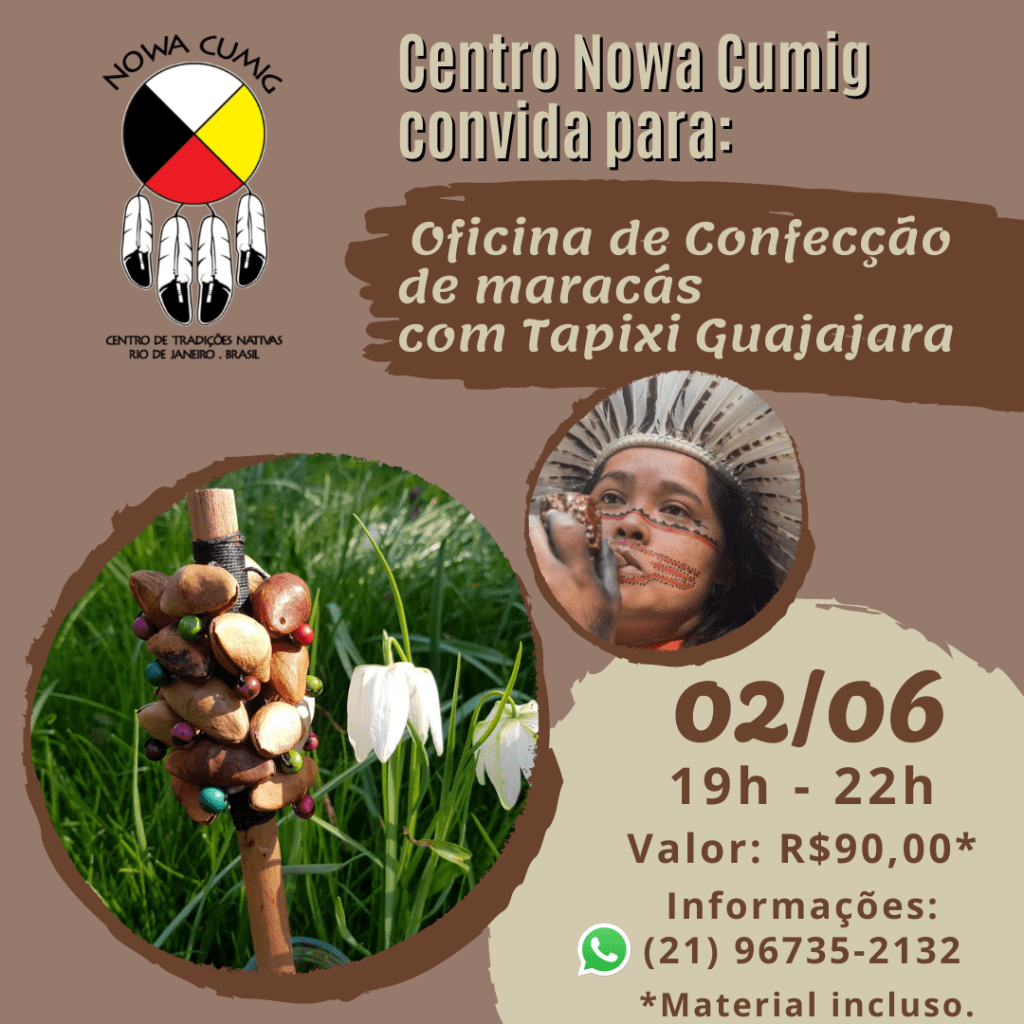 O maracá é um instrumento bem brasileiro e tem a função de ritmar as festas, alterar a consciência e de harmonizar energias. Ele pode ser feito com diversos materiais, mas o Centro Nowa Cumig escolheu fazer com a semente de aguaí, ou como é conhecida comumente de “chapéu de napoleão”.